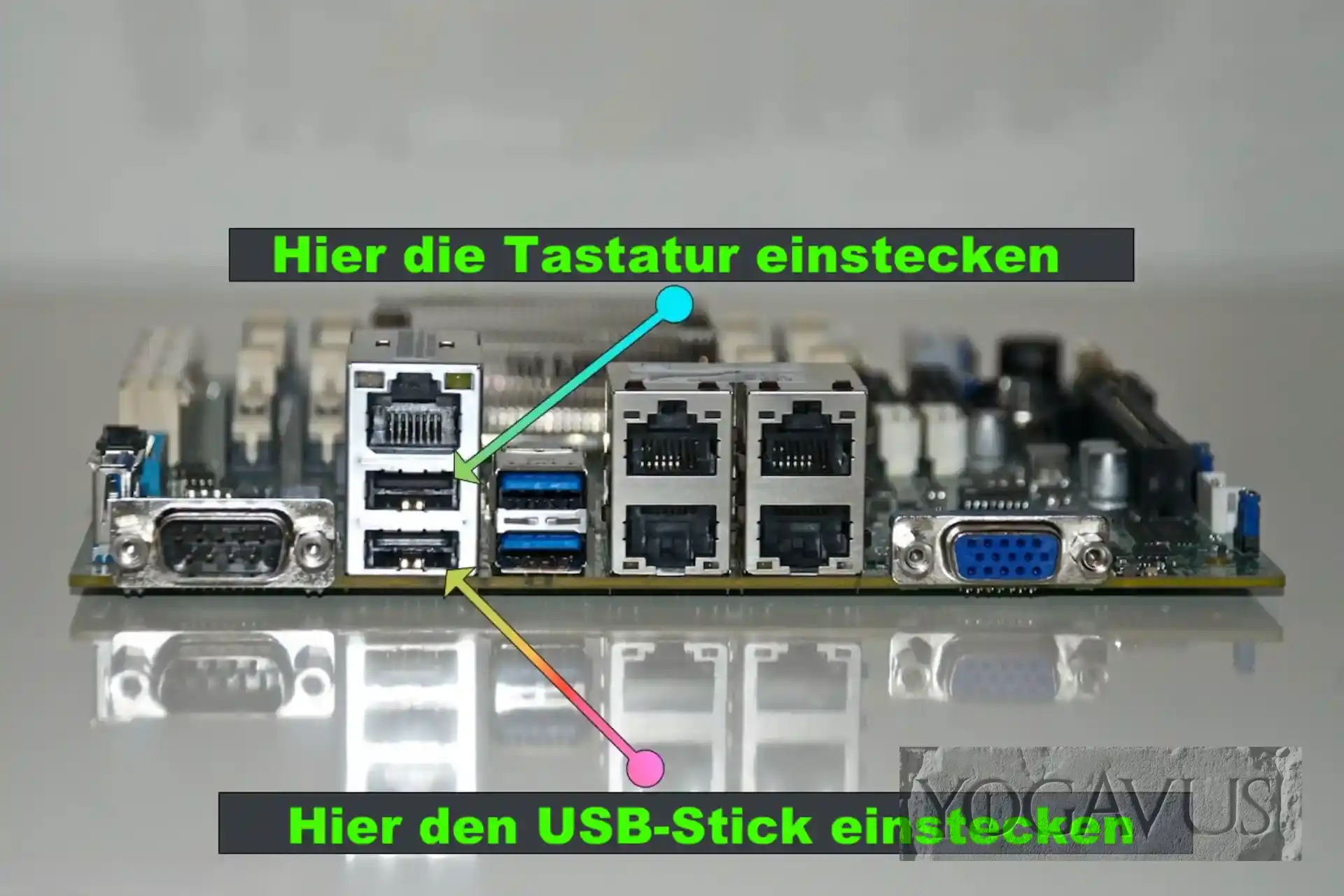 Es gibt aber doch noch einen Weg, die teure Investition nicht aufgeben zu müssen. Das Rezept beinhaltet ein eigens dafür bereitgehaltenes BIOS ROM file von Supermicro auf einem FAT-formatierten USB-Stick und eine USB-Tastatur. Beide USB-Gerätschaften müssen zudem zwingend in bestimmten USB-Buchsen am A1SRi-2758F gesteckt sein, damit die Rückholung des Boards aus dem Reich totgeglaubter Hardware gelingen mag.