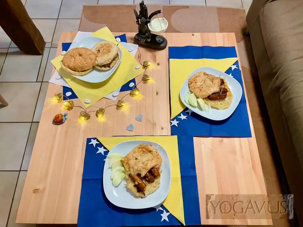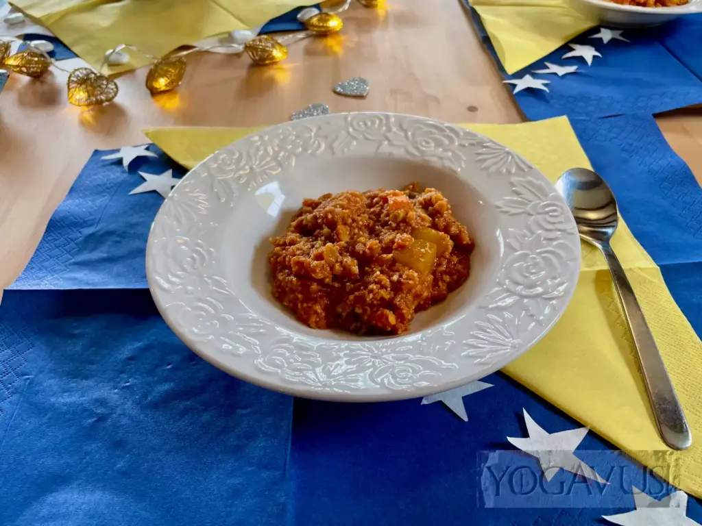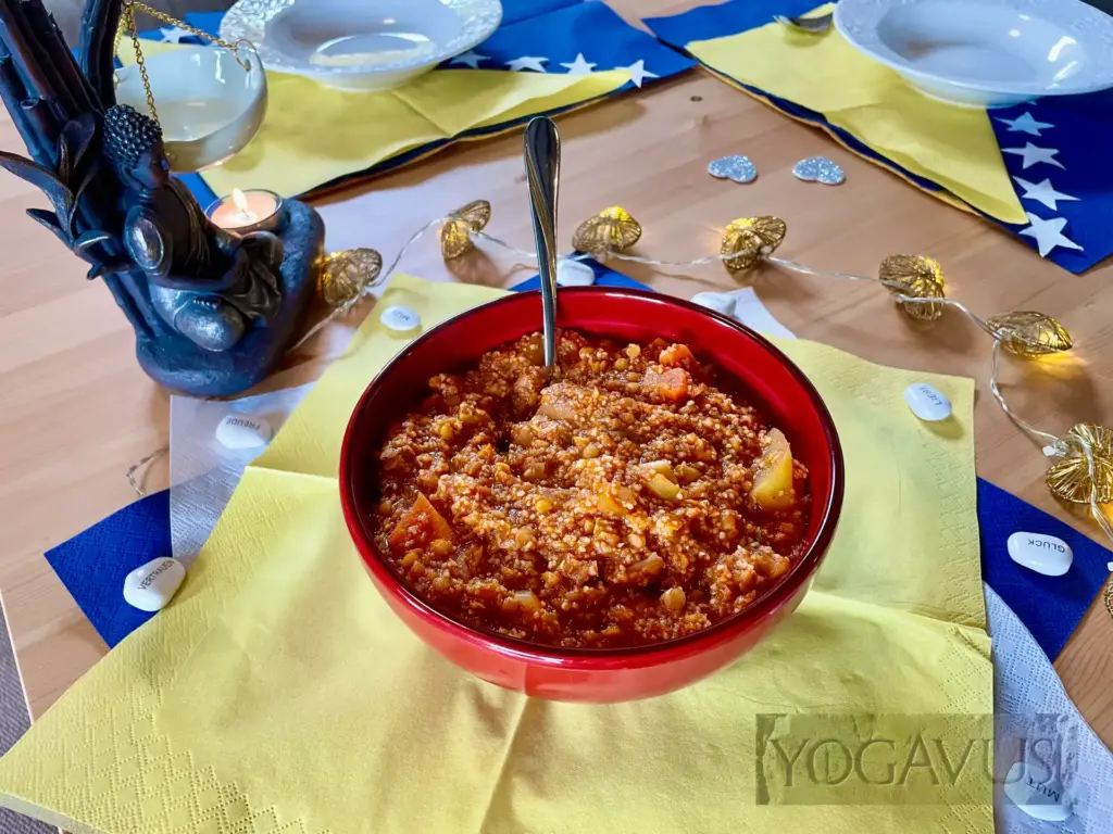 Wie in den letzten Wochen schon, so findet auch an diesem besseren Tag unseres Seins die Heimkehr zur Suppe ihre bedingungslose Fortsetzung! Das Rezept zur Bosnischen Linsensuppe vegan à la gurunest findest du längst auf unserer yogisch-verrückt-veganen Website. 😉 Übrigens passt zu jedem Süppchen prima die Bosnische Pogača vegan à la gurunest. Der Bosniak zum Beispiel, der ißt ohne Brot nix. 🙂 Letztlich brauchst du die Kalorien, denn gleich geht’s ab auf einen in der Adria patrouillierenden US-Flugzeugträger. Volle Action gestaltet sich schlecht mit leerem Magen!