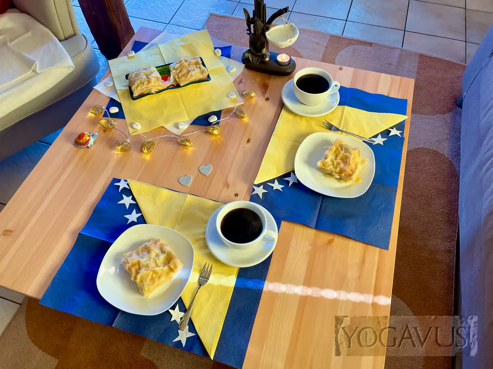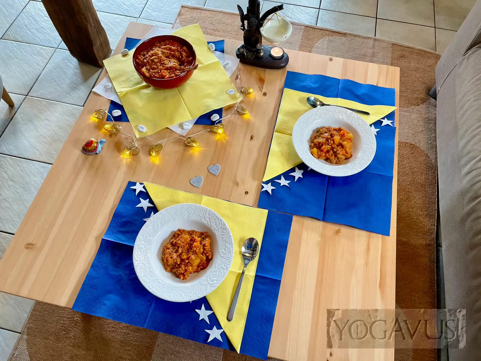 Wie in den letzten Wochen schon, so findet auch an diesem besseren Tag unseres Seins die Heimkehr zur Suppe ihre bedingungslose Fortsetzung! Das Rezept zur Bosnischen Linsensuppe vegan à la gurunest findest du längst auf unserer yogisch-verrückt-veganen Website. 😉 Übrigens passt zu jedem Süppchen prima die Bosnische Pogača vegan à la gurunest. Der Bosniak zum Beispiel, der ißt ohne Brot nix. 🙂 Letztlich brauchst du die Kalorien, denn gleich geht’s ab auf einen in der Adria patrouillierenden US-Flugzeugträger. Volle Action gestaltet sich schlecht mit leerem Magen!