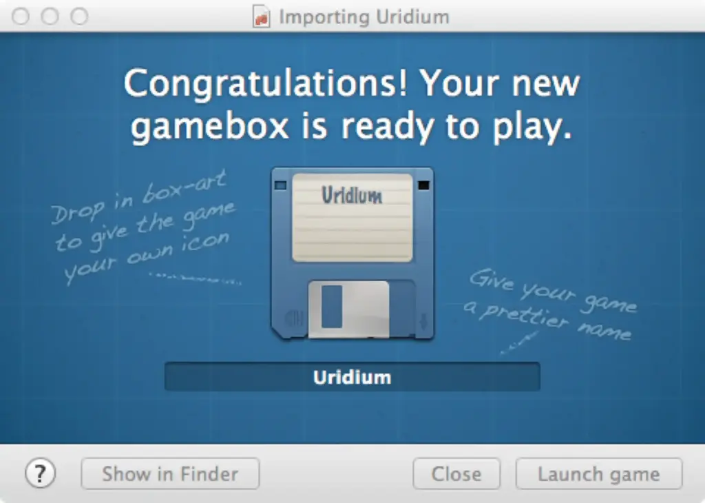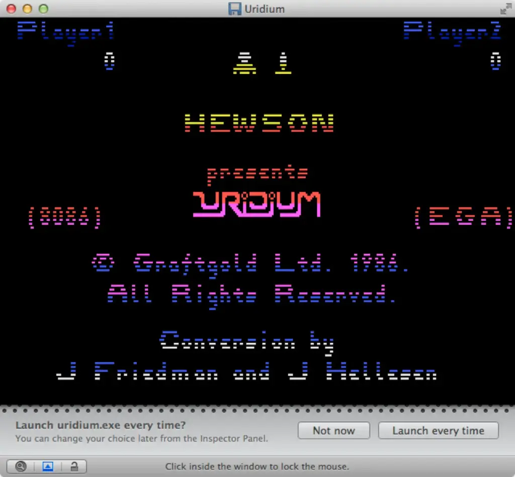 Die vorhergehende kleine Bilderserie zeigt, wie unkompliziert das DOS-Spiel Uridium, welches 1986 übrigens zuerst für den C64 erschienen ist, durch Drag and Drop des Spielerordners nach Boxer installiert wird: