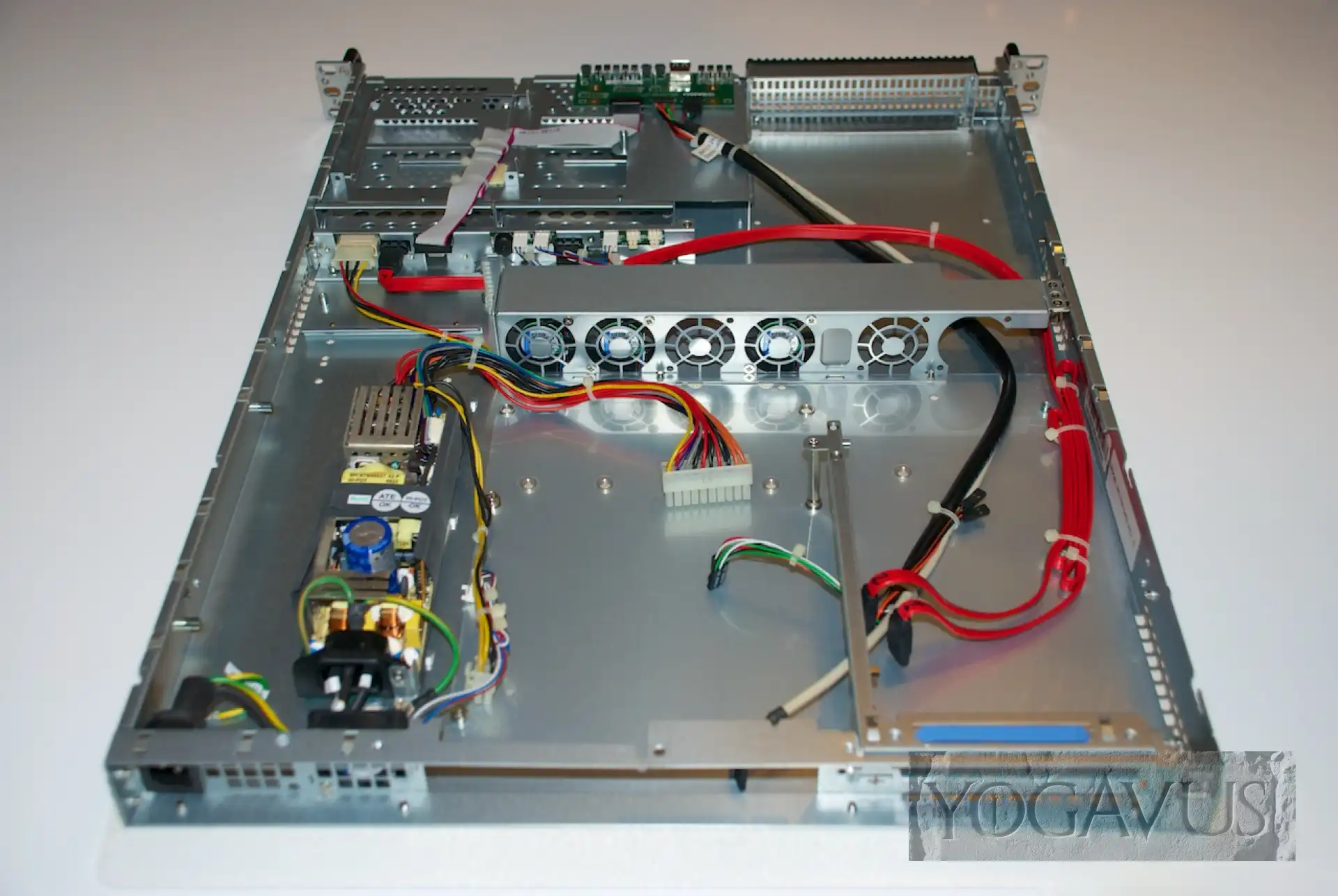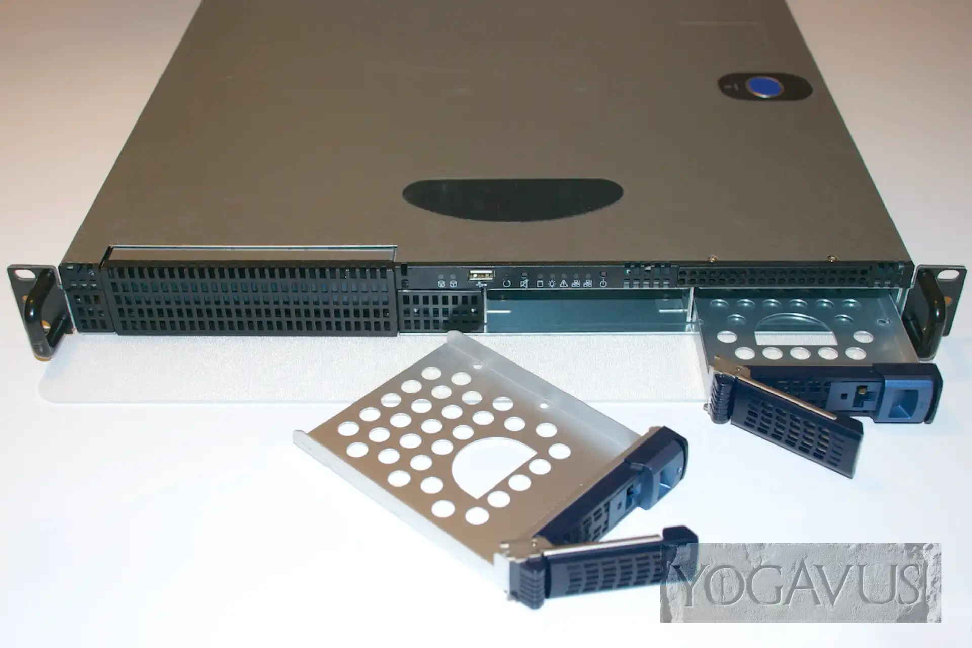 Das am 01. August 2003 von Chenbro in Taipei vorgestellte RM12402 mit lediglich einer Höheneinheit ist für den genannten Einsatzzweck geradezu prädestiniert. Damals von Chenbro für ATX Boards mit XEON vorgesehen, würden ich den Kasten eher für billige APUs hernehmen, also Intel Atom oder AMD E-350, E-450 oder E2-2000. Dazu dann noch 8 Gigabytes RAM rein. Im Gegensatz zum früher von mir vorgestellten RM214000 mit zwei Höheneinheiten und sechs 3,5″ Einschüben wartet das RM12402 mit lediglich 2 Slots auf.