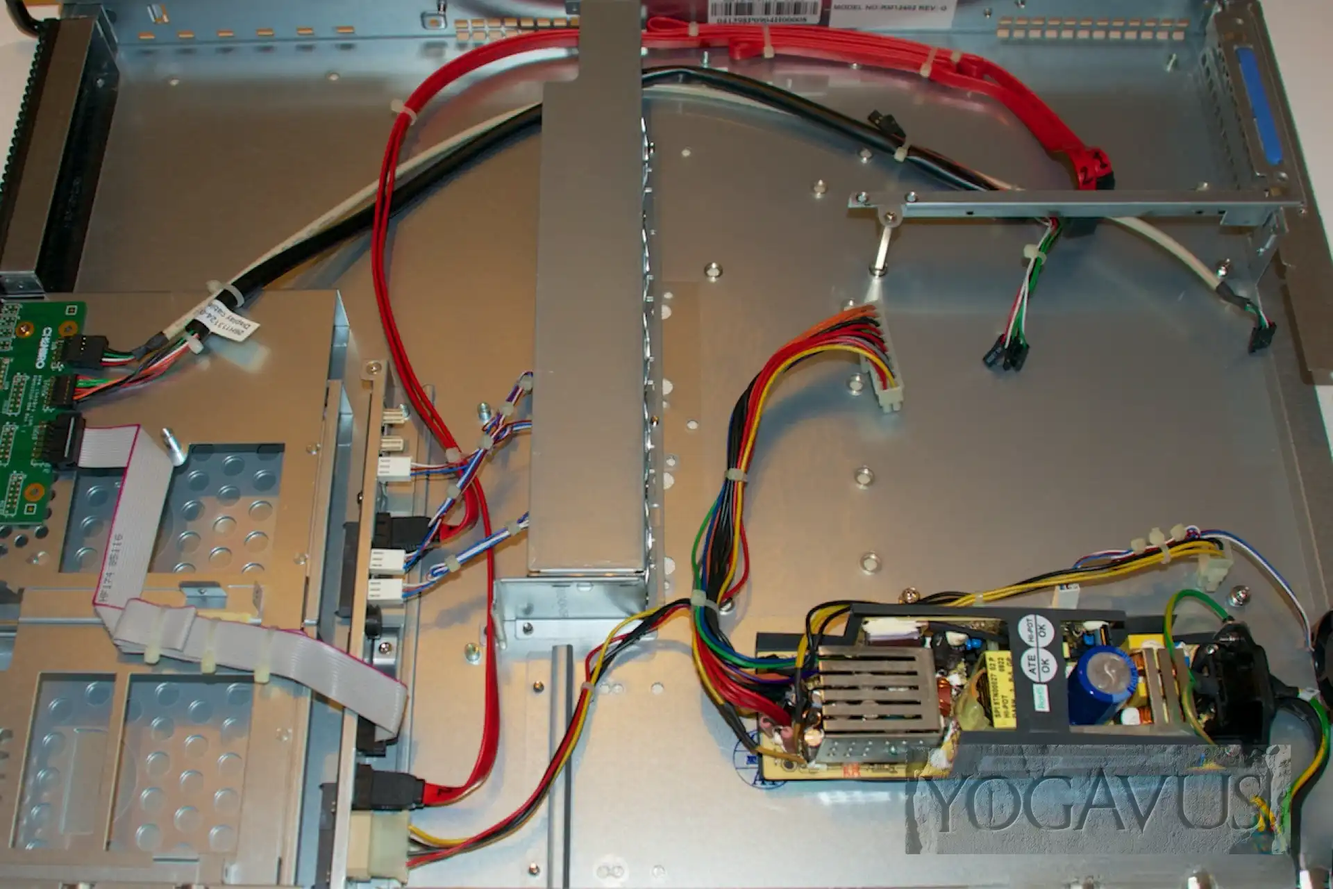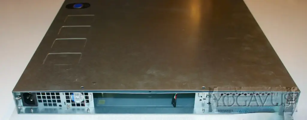 Zurück zu den tapferen Gebrauchtgehäusen. Achtet unbedingt darauf, dass Ihr das Teil mit vorhandener SATA-Backplane ersteht (wie auf den Fotos abgebildet). Je nach gedachten Einsatzzweck nimmt man eine SSD oder 2 Festplatten ins System und los geht’s. Ohne ECC wäre hier ein lokaler Gameserver denkbar oder in der SSD-Variante auch ein abgesetzter Webserver mit schnellen Reaktionszeiten. Die Abwesenheit von ECC und RAID könnte man hier hinreichend mit Backup per rsync im Intranet kompensieren. Mit 2 ‘fetten’ Festplatten könnte die Combo auch wunderbar als DLNA Server und iTunes Server fungieren.