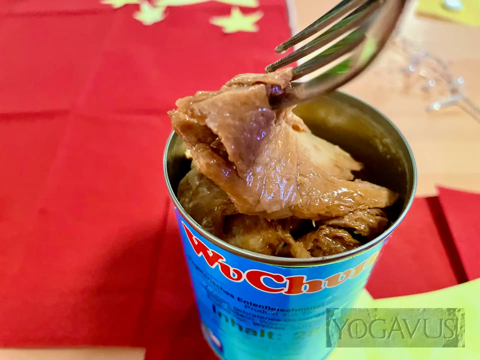 All diesen Menschen werde jetzt Kanonenfutter für zukünftige Verbalattacken zuteil: VEGANE “Ente” aus der Dose. Siehe Fotos. Gibt es im Onlinehandel für kaum zwei Euro die Dose. Es gibt bestimmt gesündere Nahrungsmittel, aber es ist witzig. Verrückterweise ist sogar die porige “Haut” nah dran am Original. Das kann man nur mit Humor nehmen und mit einem Schmunzeln verdrücken. Im Übrigen schmeckt das Dosenglück wirklich ordentlich.