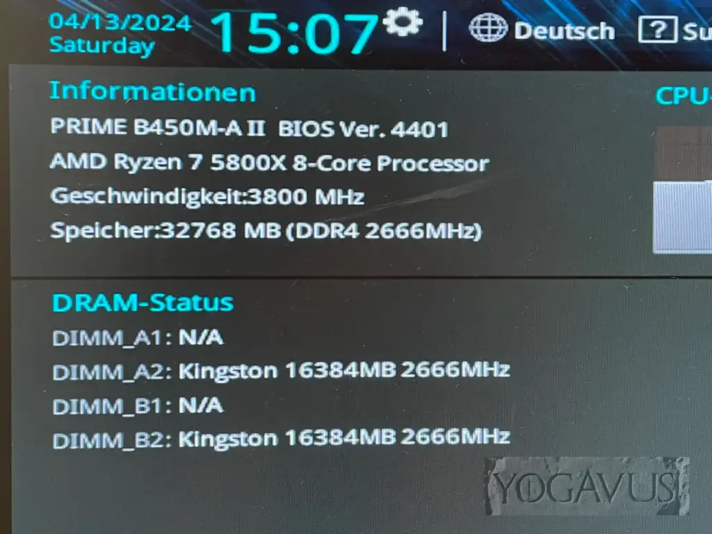 Der unfreiwillig tagelang gaming-abstinente Besitzer klickte sich als Ersatz-CPU einen AMD Ryzen 5700X, auch acht Kerne, ein wenig mehr Saft und vor allem frisch. Aufgrund der sicherlich gealterten Elektrolykondensatoren auf dem ursprünglich hergenommenen MSI Mainboard wurde auch gleich die Hauptplatine aufgefrischt mittels eines Asus Prime B450M-A II. Mögen die Götter der neuen Konfiguration gesonnen bleiben.