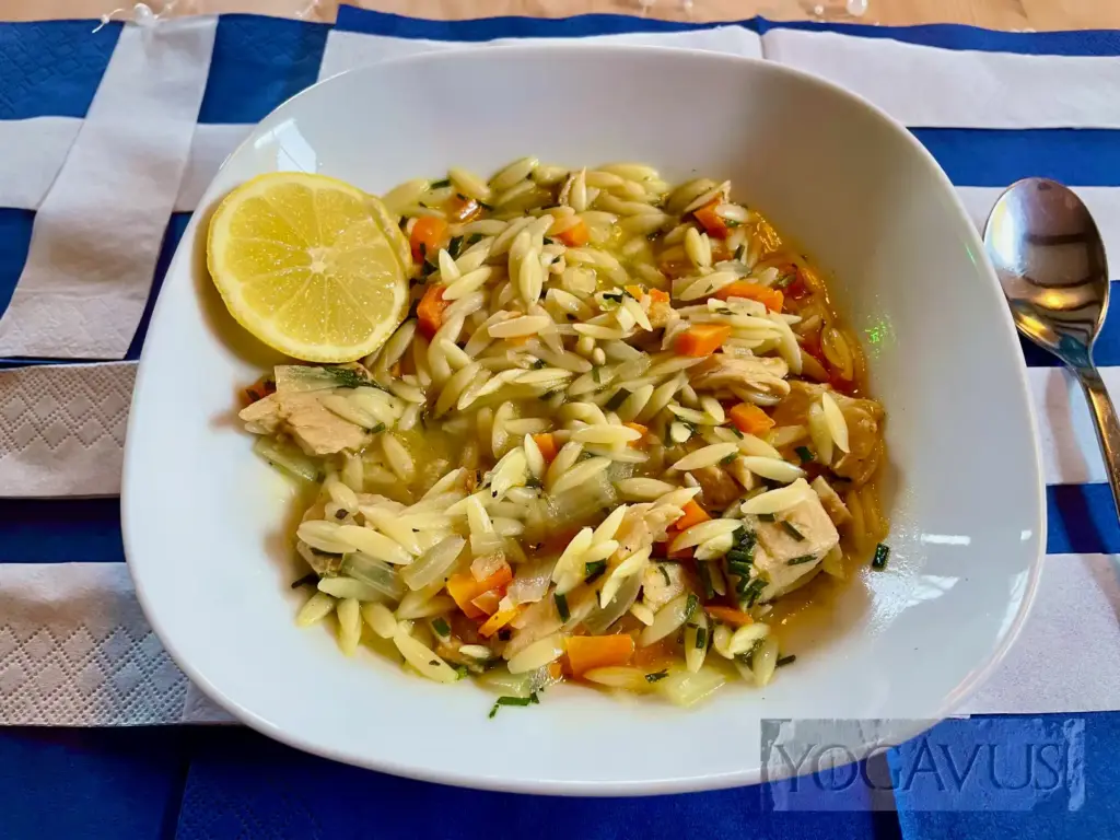 Sonne auf der Zunge: Griechische Zitronen-Hähnchen-Suppe vegan