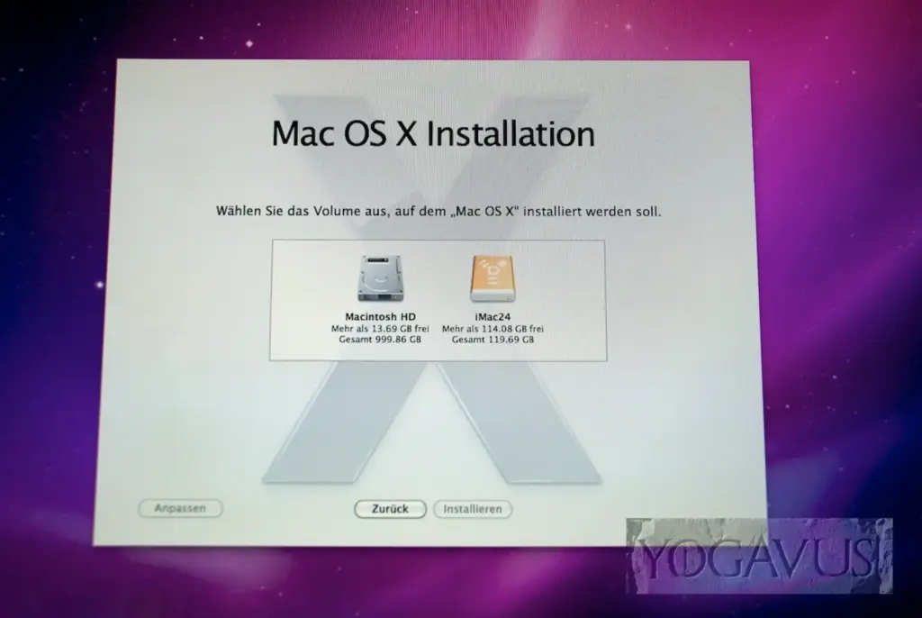 Firewire 800-Kabel stecken, Netzstecker in die Dose und das Sk-3500 mit dem Kippschalten hinten aktivieren. Unser Upgrade-Vorgehen sieht eine Neuinstallation von Mac OS X vor, frei lähmenden Altlasten und vor allem schlank im Platzbedarf. Die großen Library-Verzeichnisse, Musik und Filme können ruhig auf der internen Festplatte verbleiben.