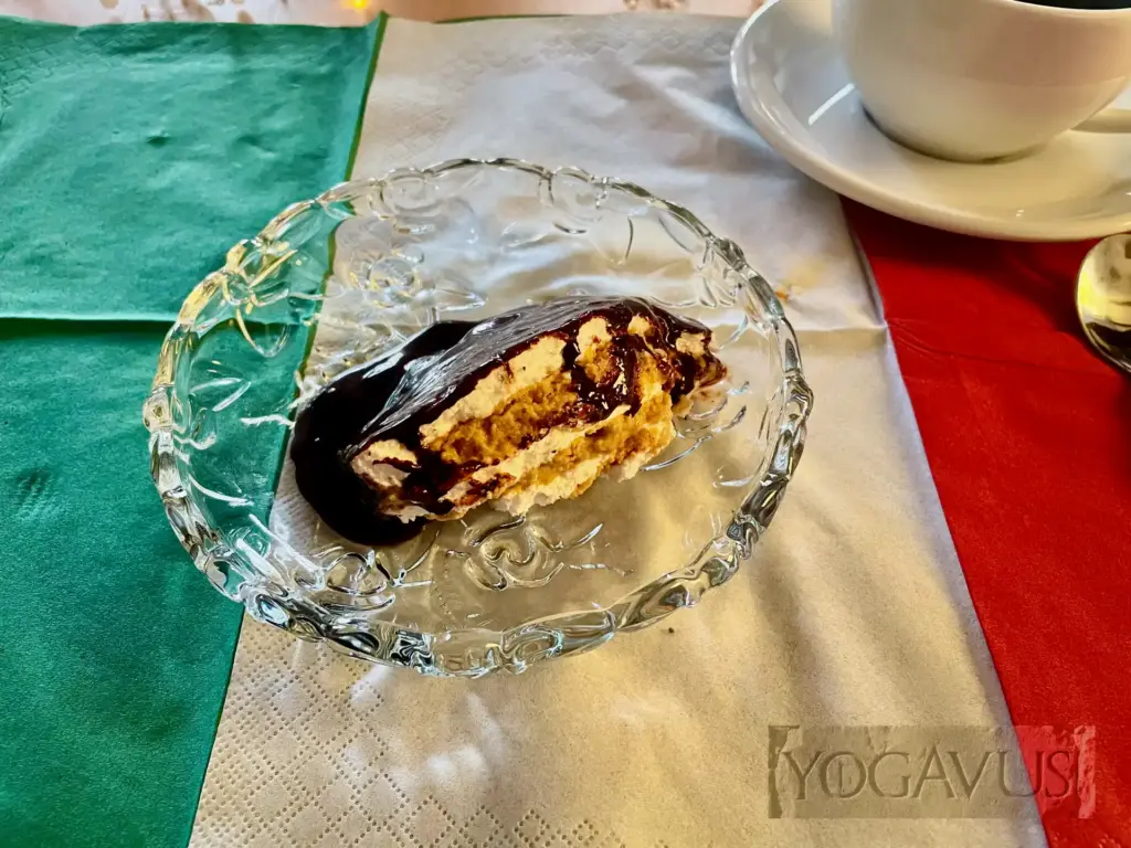 Mit Löffelchen oder Gäbelchen, Qual der Wahl, durchstößt es sich buttrigweich im Freudenbett veganen Tiramisus. Meine Muse macht mich seit nunmehr 30 Jahren zur Schnecke, weil meine Stimmbänder in derartigen Momenten nur noch permanente Hmmms und Hmmmms und Leckerrrrr anstimmen.