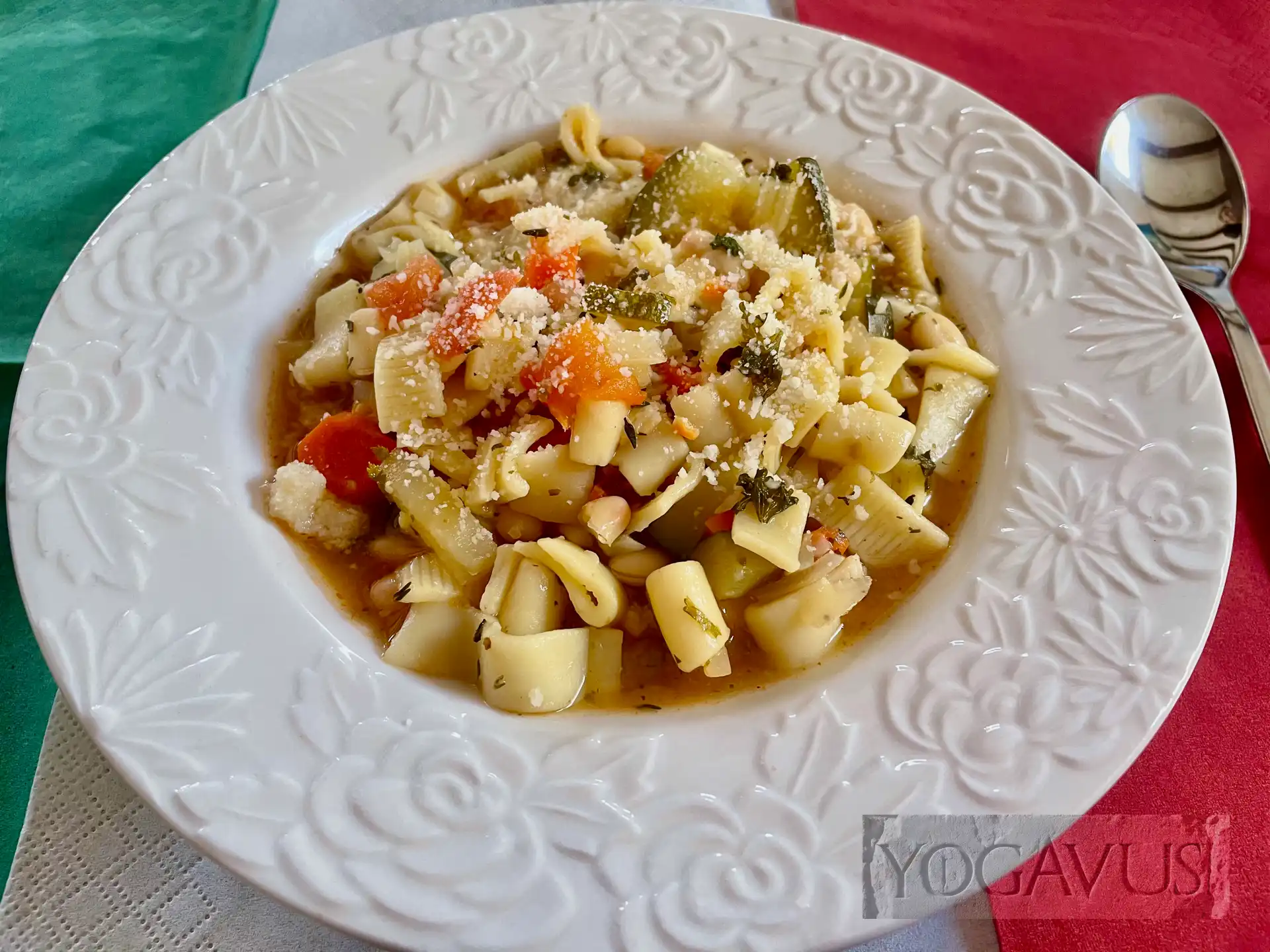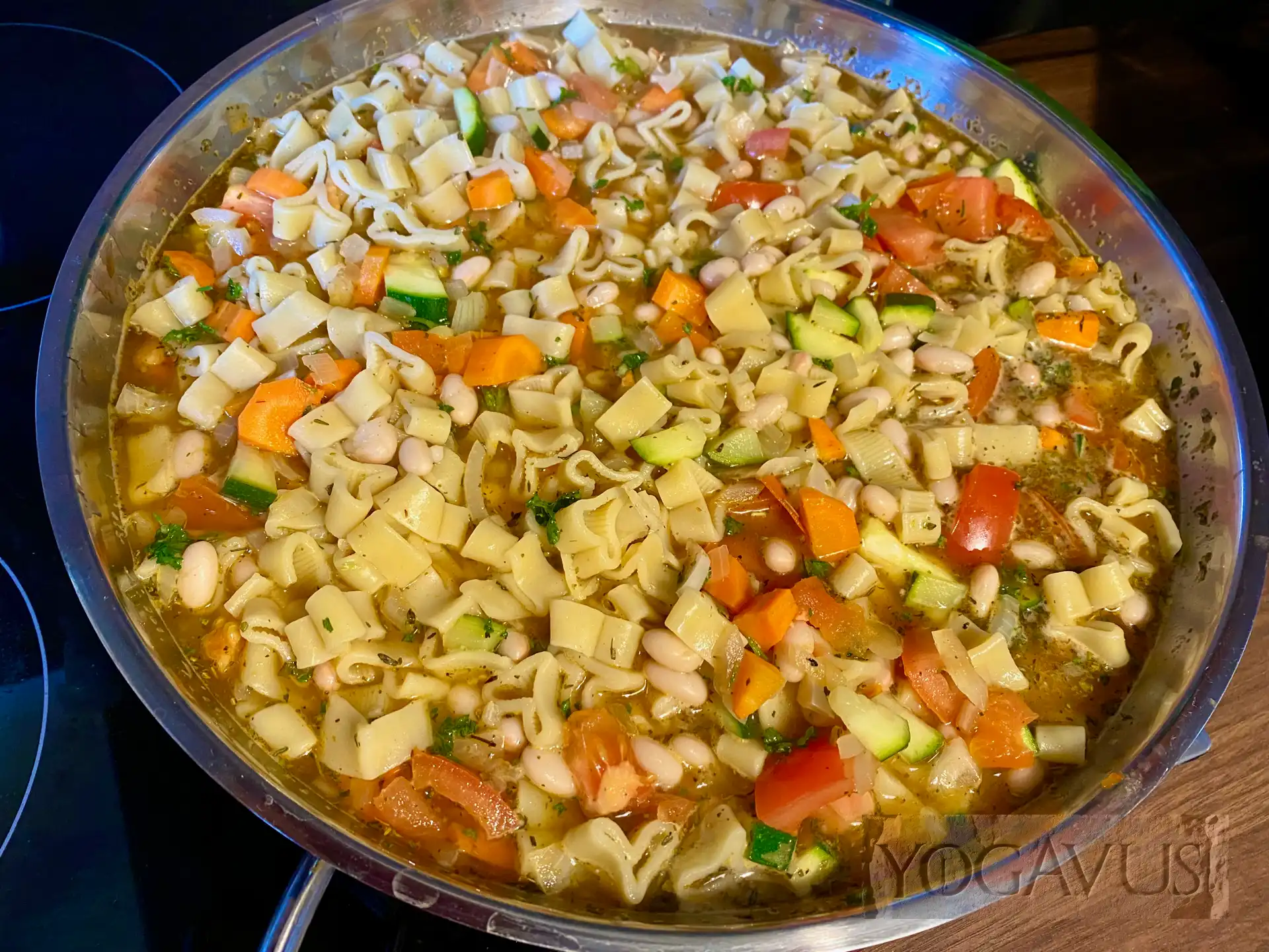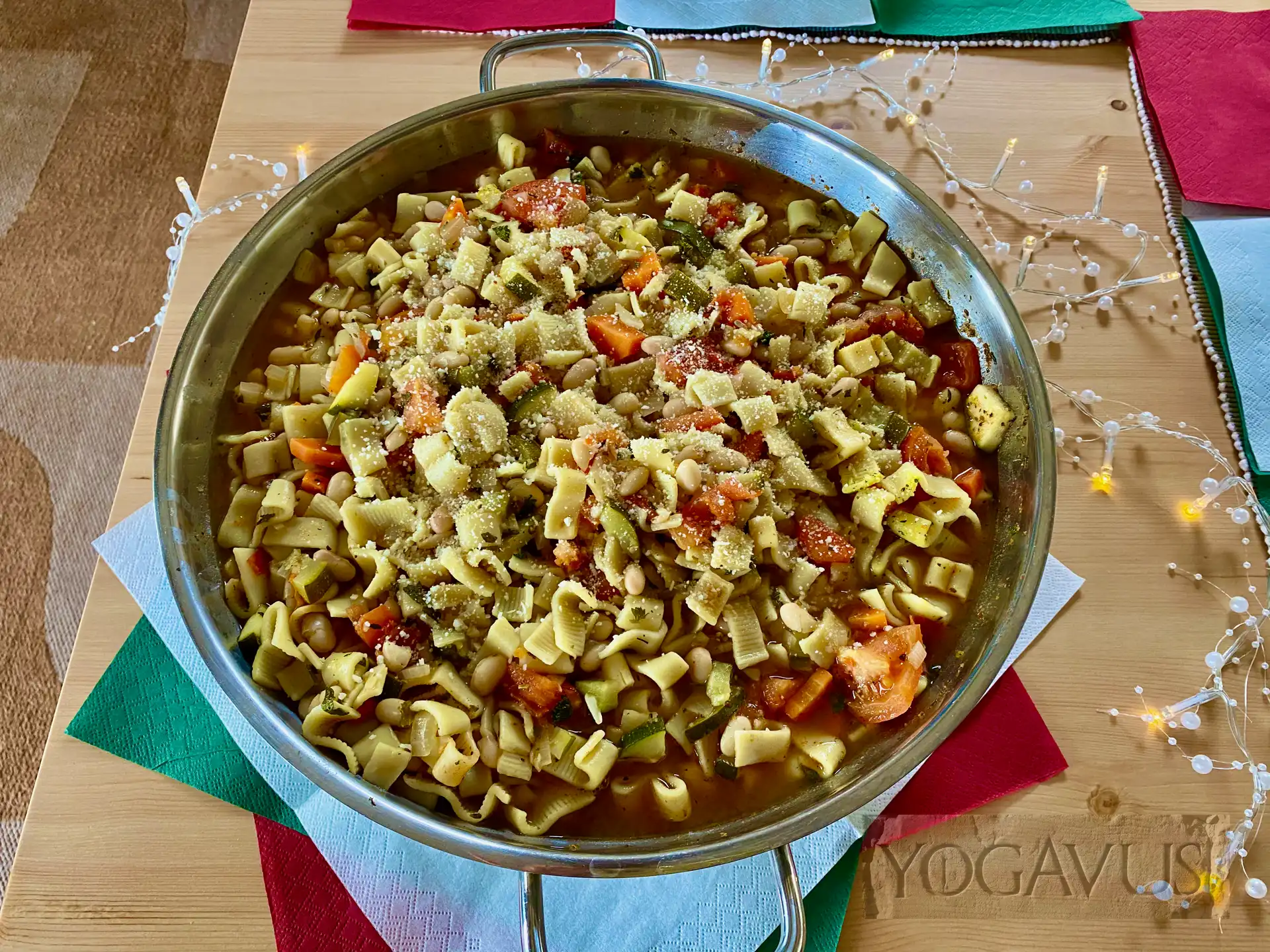 Wie in den letzten Wochen findet unsere Heimkehr zur Suppe die bedingungslose Fortsetzung! So unverzichtbar wie das Schnibbeln des Gemüses, so unvermeidlich bleiben die Dankeshymnen unserer Geschmacksknospen. Die von meiner liebreizenden MUse nach diesem Rezept so liebevoll bereitete Minestrone gerät so lecker gemüsig, so famos italienisch. Mensch, die Welt muss zurück zur Suppe! 😉