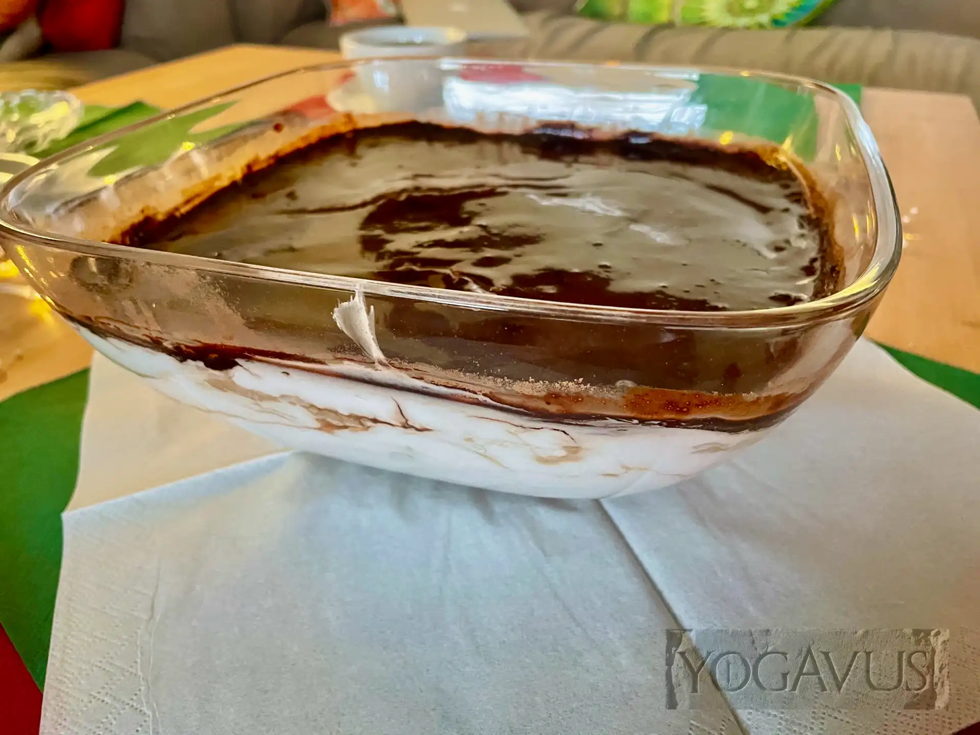 Mit Löffelchen oder Gäbelchen, Qual der Wahl, durchstößt es sich buttrigweich im Freudenbett veganen Tiramisus. Meine Muse macht mich seit nunmehr 30 Jahren zur Schnecke, weil meine Stimmbänder in derartigen Momenten nur noch permanente Hmmms und Hmmmms und Leckerrrrr anstimmen.