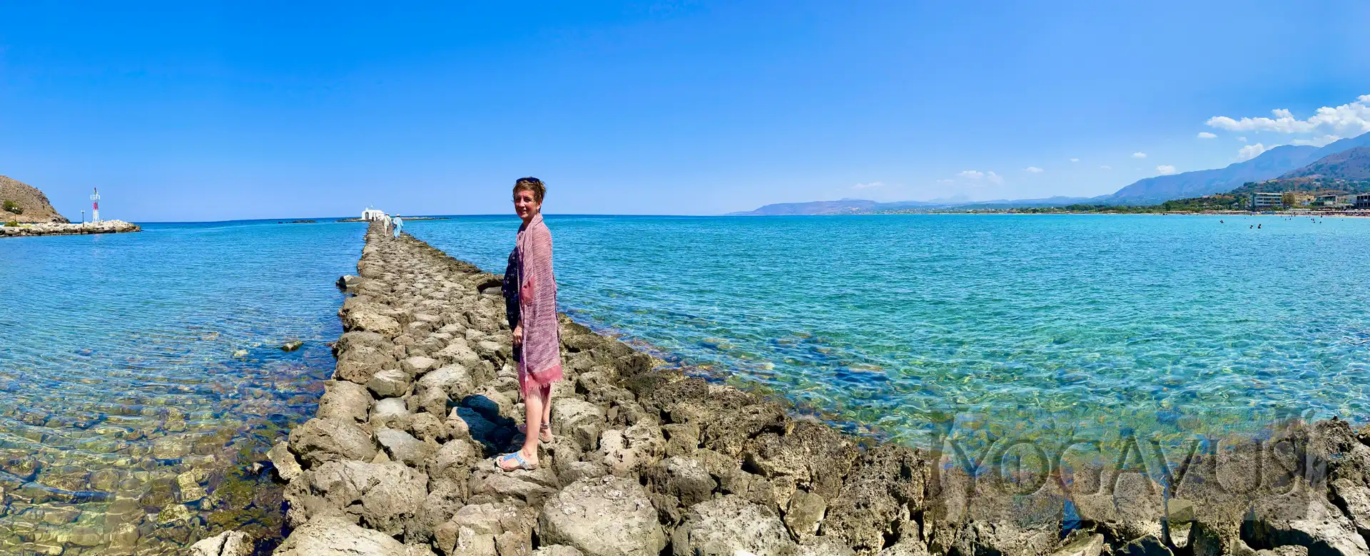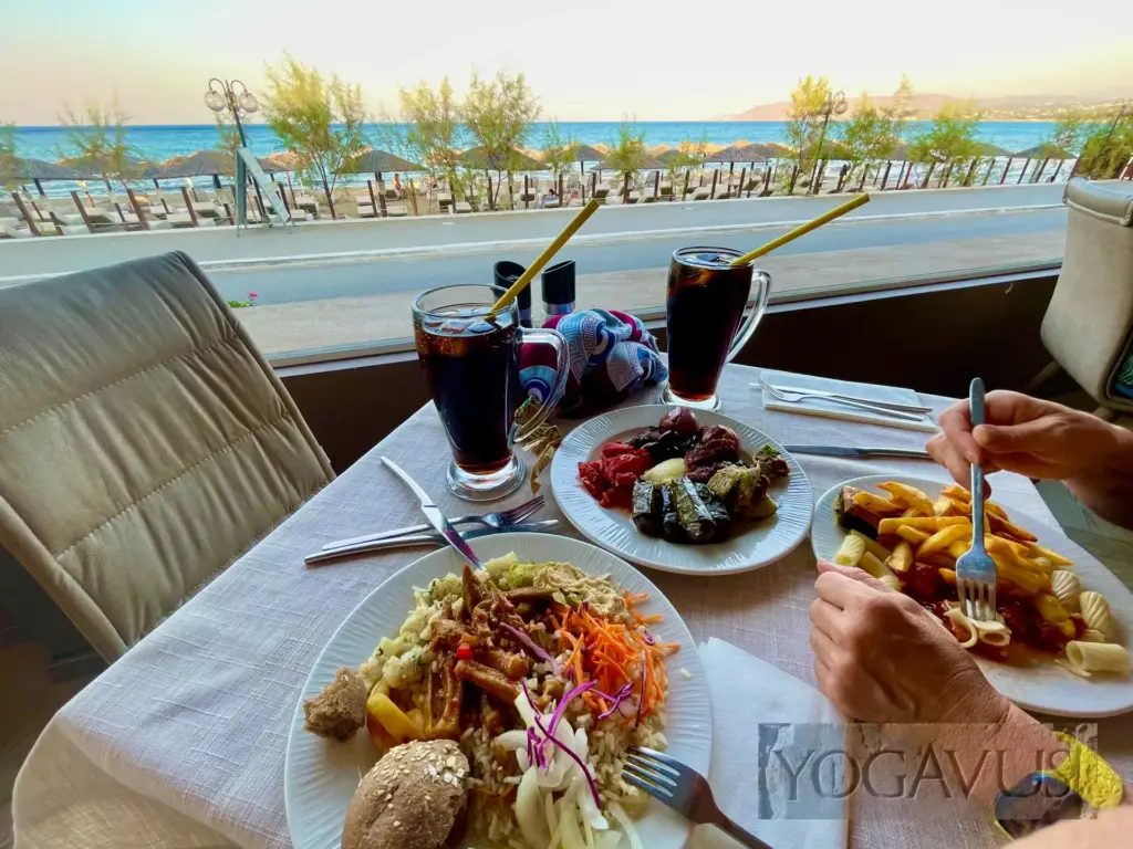 Ganz hohe Gebäude gibt es gottlob (noch) nicht, heimelig ist es. Die Hotels verwöhnen ihre Gäste mit einem wunderbaren Strand, wie er am wunderbarsten mit Blick zum Meer ganz links und unmittelbar vor dem kleinen Fischerhafen ist. Kaum Wellengang, herrlich feiner Sand und das Zwinkern griechischer Sonne.