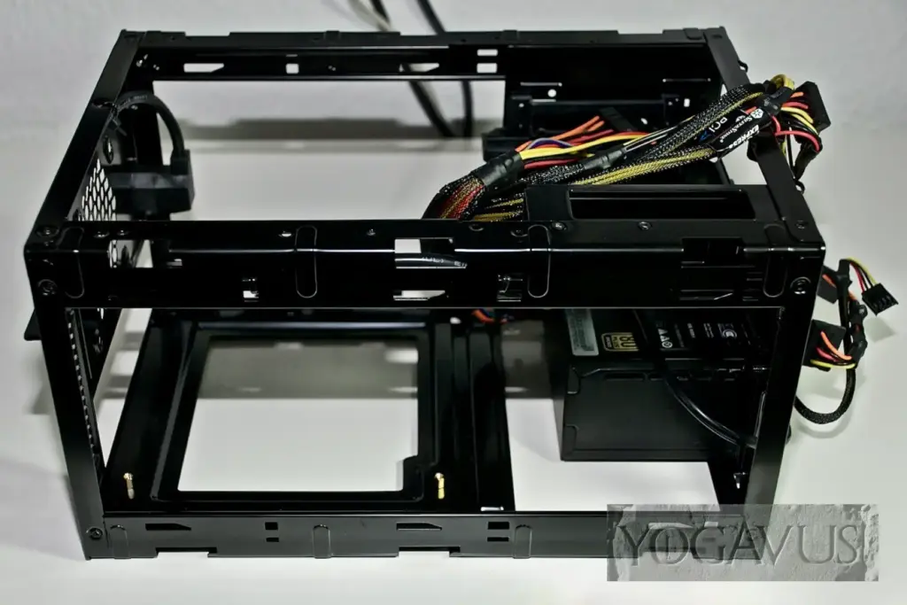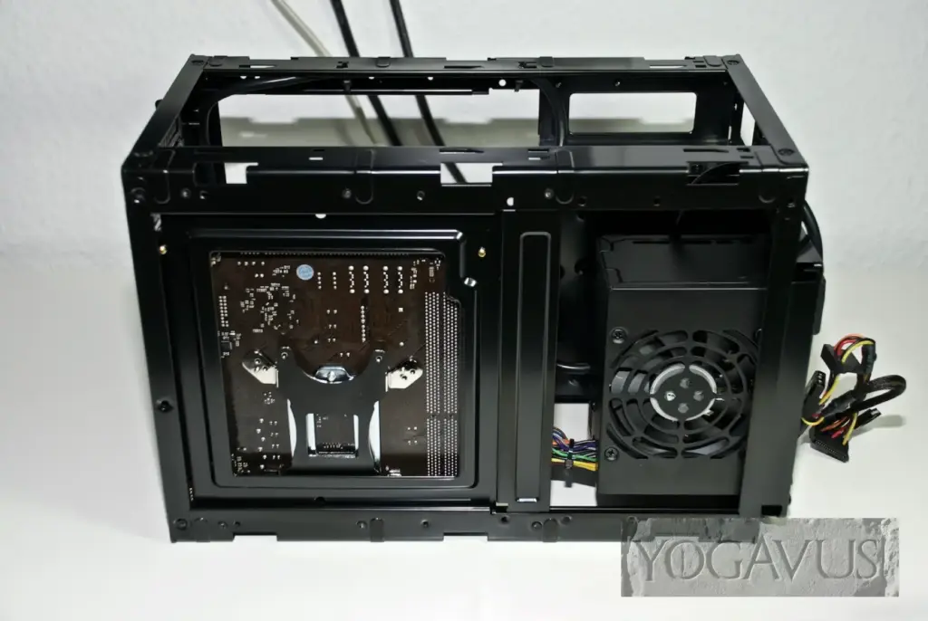 Damit kommen wir auch schon zu dem Netzteil. Das Sharkoon QB One verlangt nach einem SFX-Netzteil und da ist der Dauerfavorit ohne Einschränkungen das SilverStone SST-ST30SF. Ein schniekes 300-Watt-Würfelchen, welches bei einfacher Last so kühl bleibt, dass der Netzteillüfter sich gar nicht erst dreht.