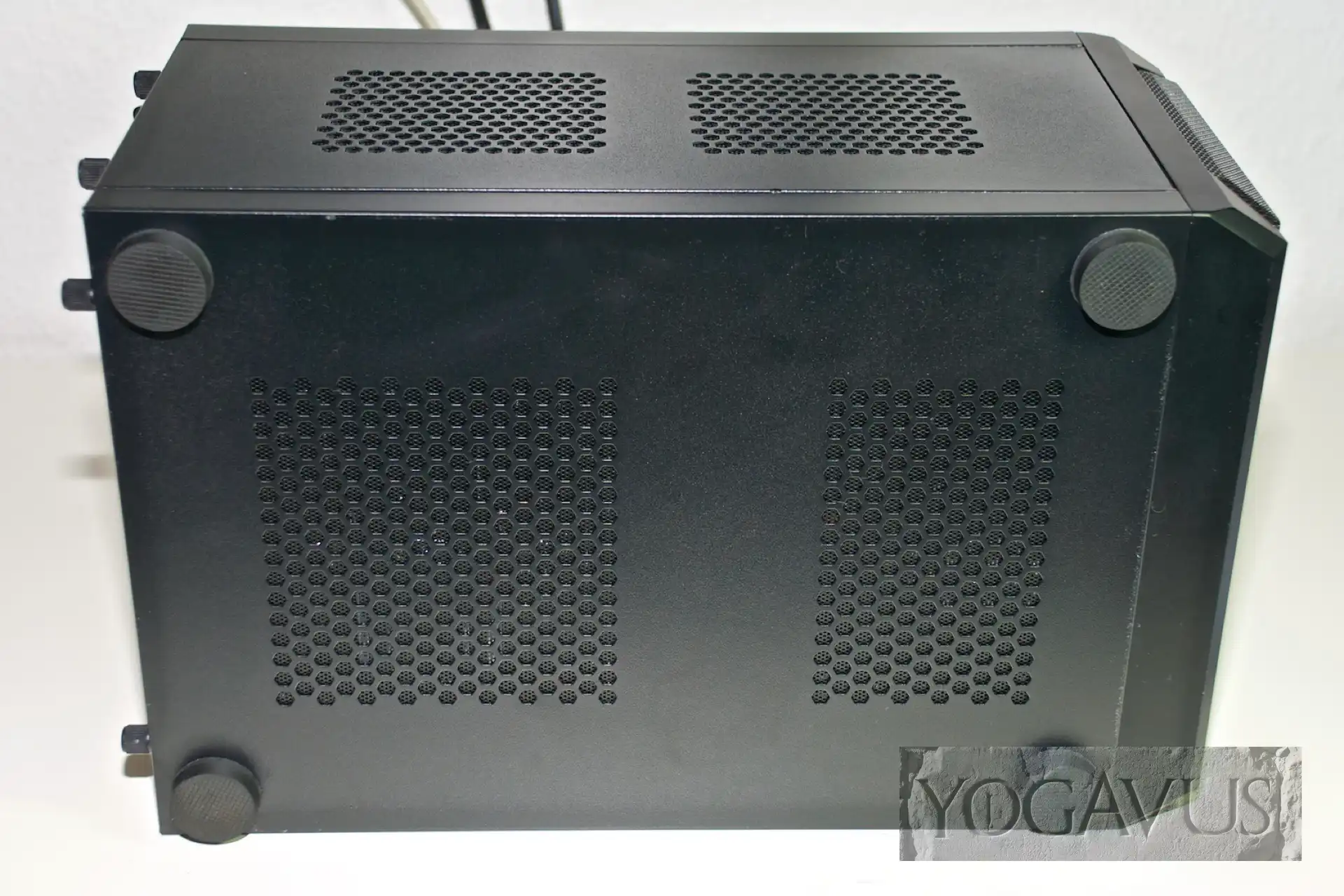 Jetzt vom QB One Bodenblech, Deckel und Seitenteile wieder verschrauben. Gehäuse auf die Seite legen und die vier mitgelieferten und selbstklebenden Gummifüßchen anbringen. Voilà!