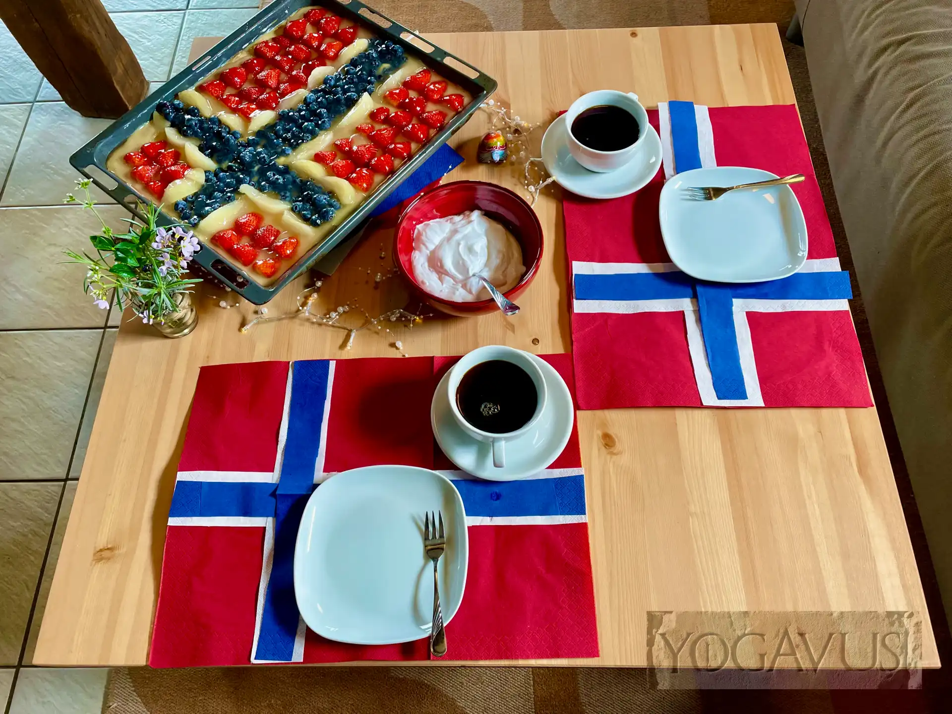 Aus hohen Lüften kommend erreichte heute Morgen unser prima yogischer Flieger den Luftraum Norwegens mit seinen 25.000 Kilometern Küstenlinie und gerade einmal knapp über fünf Millionen Einwohnern. Unser in Okinawa begonnener 8600 Kilometer zählender Himmelsmarsch übers Erdrund geriet abermals zur Bestätigung, dass des Menschen Bestimmung mitnichten die Einsperrung sein kann. So flogen wir ein, in das Land der Wikinger, in die Heimstätte uns hoffentlich hold gewogener Trolle.