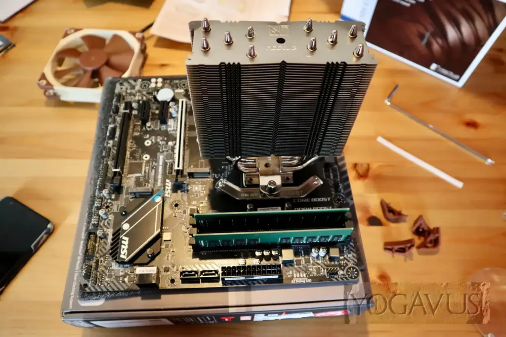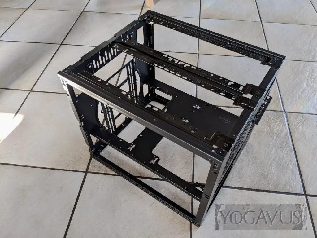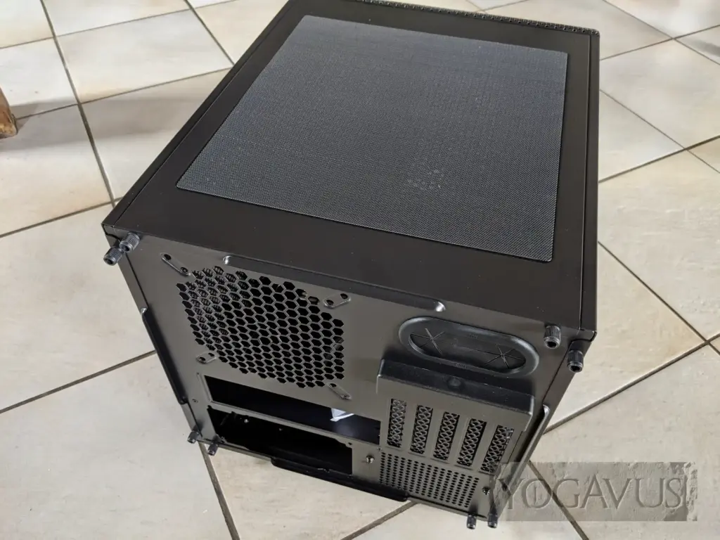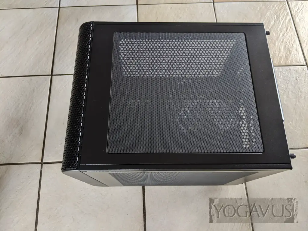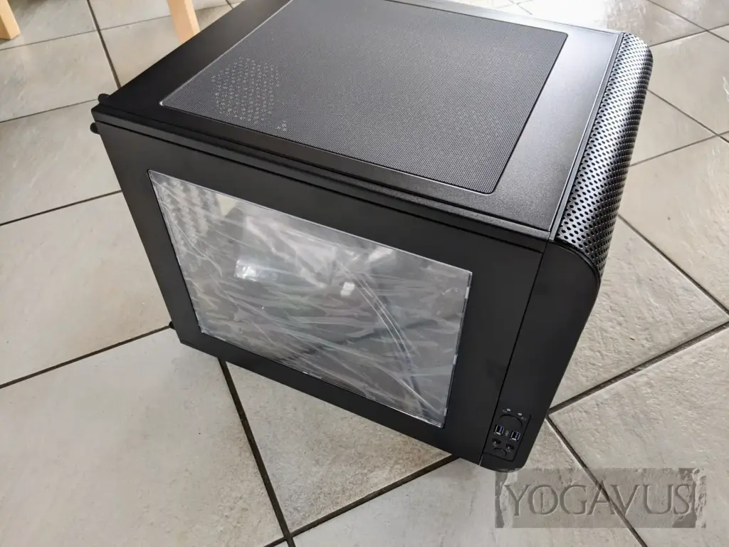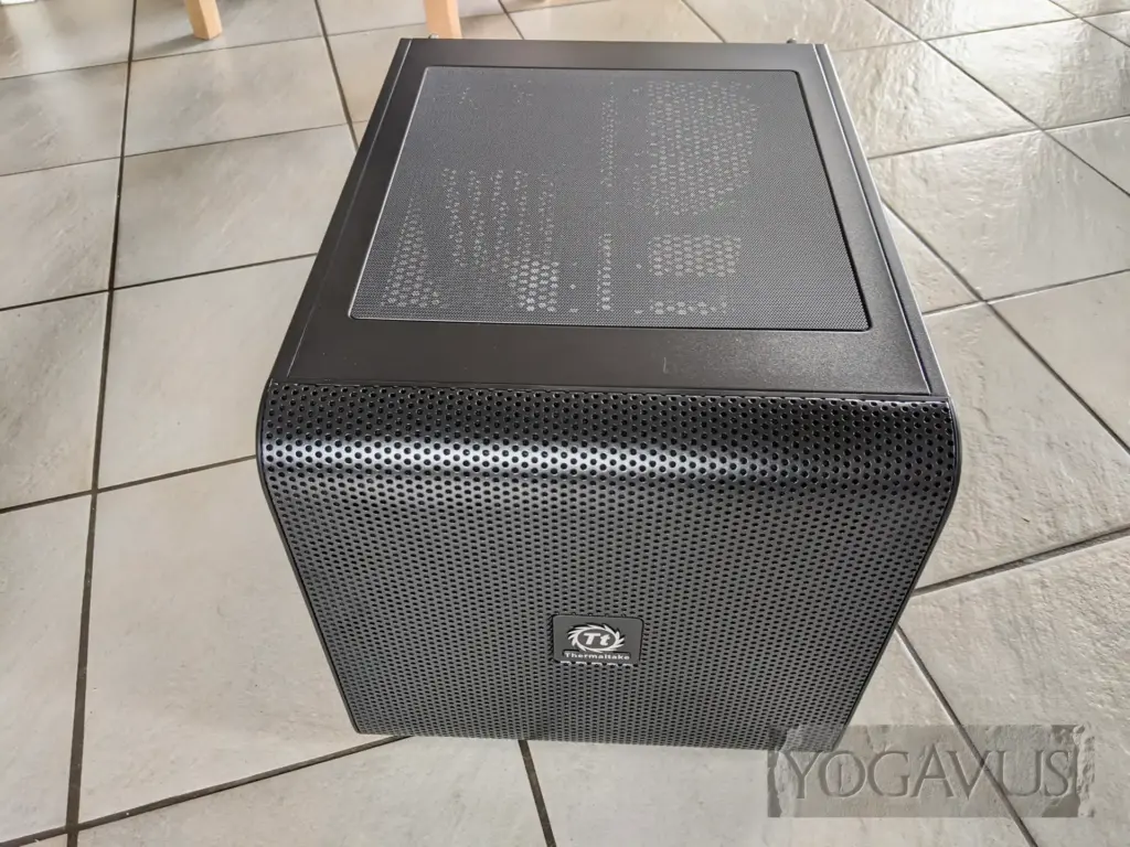 Compañero Marcel vertraute meinem Rat, ein Cube Gehäuse als das richtige Konzept zu sehen für einen gar nicht so leichten Lüfter nebst der dedizierten Grafikeinheit. Vertikal montierten Mainboards mit jahrelang in Richtung Erdmitte am PCB reisenden CPU-Kühlern vermochte ich noch nie großes Vertrauen zu schenken. Der pfiffige Würfel Thermaltake Core V21 macht es besser und er ist zudem komplett und schnell rupfbar, auch im fertigen Zustand.