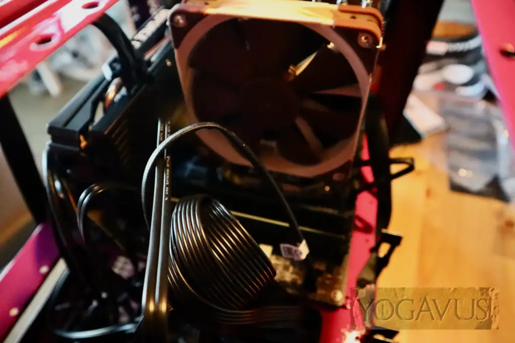Nach drei Lackierdurchläufen, einem problemlos montierten Noctua-Lüfter und einem blitzschnellem fehlerfreien Aufbau schnurrt das purpurne Glück im harten Dauereinsatz eines dauerzockenden bärtigen Mannes. So soll es sein.