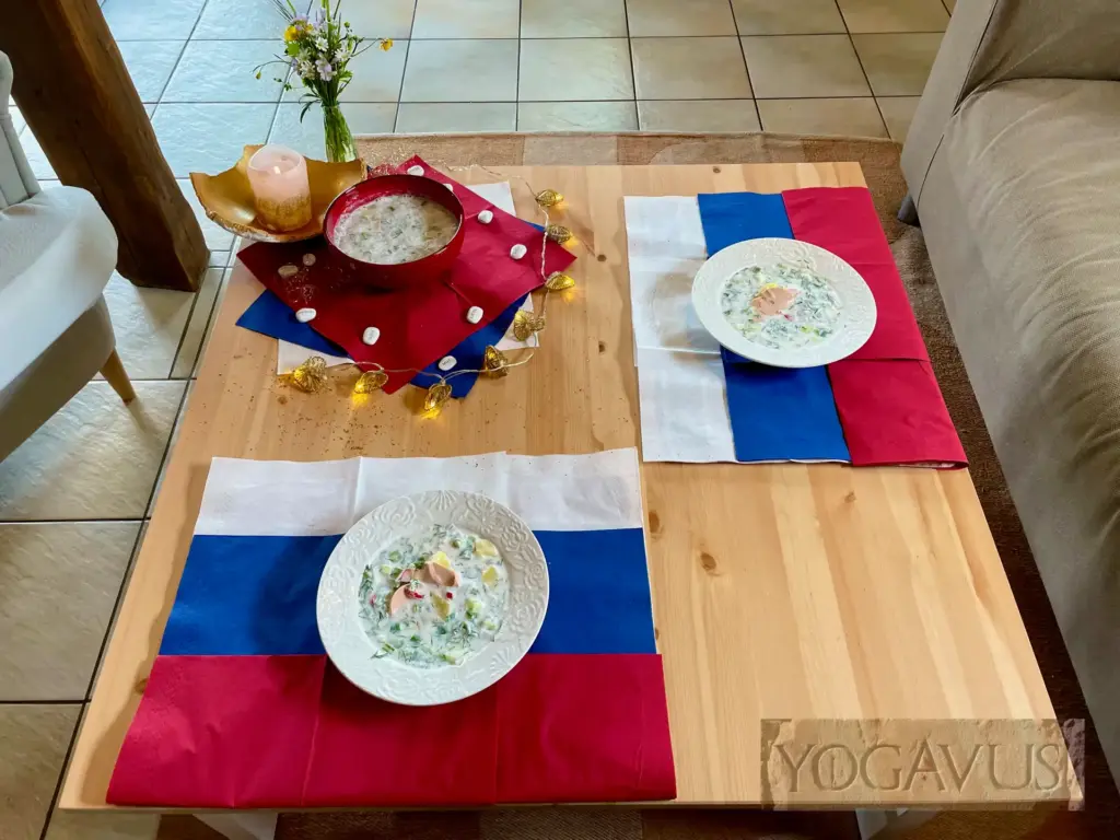 Lässt uns die Fremde frösteln, so will es eine uralte Weisheit des Yogavus, dann heißt uns die heiße Suppe willkommen. So geschehen etwa mit dem Dal in Indien, ebenso mit einer famosen Apfelsuppe in Ungarn, auch schlürfend köstlich mit der in China genossenen Glasnudelsuppe und erst recht und vor allem mit der Minestrone als Königin aller Suppen in bella Italia. Ja, und jetzt, wie soll ich es sagen? Jetzt bleibt der Teller kalt. 🙂 Aber keine Sorge, schließlich ist die nach diesem Rezept zubereitete kalte Okroschka unseres Russlandtages allemal würdig. Versprochen!