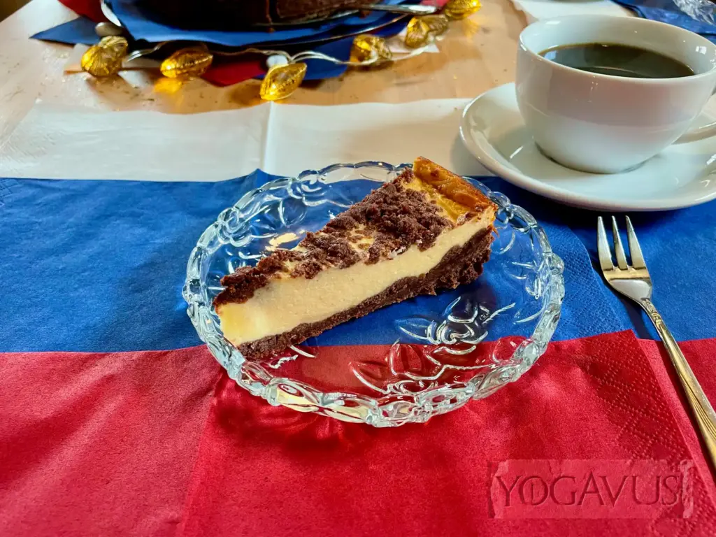 Ein Leinwandepos größter Schönheit und Genialität liegt nun hinter uns. Lang und inhaltsschwer wie das Leben. So wie sich alles Leben nach des Sonnenlichtes pflanzlichem Derivat Zucker sehnt, so sehr brauchen jetzt und sofort unsere von Revolution und unerfüllter Liebe aufgeriebenen Gemüter ein wenig Kuchenglück. Natürlich mit russischem Lokalkolorit und natürlich rein vegan. Drum labe dich wie wir an dem nach einem Rezept meiner liebreizenden Muse bereiteten russischen Zupfkuchen vegan. Und gestatte dir ein Lächeln. Ist gar nicht so schwer. Schließlich kommt bei derlei süßem Glück das Lächeln über dein Gesicht wie der frühe Sonnenstrahl über das Land.
