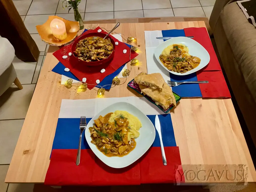 Führ dich nicht in Versuchung und probier die eingelegten Salzgurken nicht so. Ganz ohne Schaudern passen die salzig-sauren Gurkenfreunde jedoch im kulinarischen Abschluss unseres Aufenthaltes hier in Russland. Dass man ein Bœuf Stroganoff auch ohne Rinderfilet und Sauerrahm hinbekommt, davon zeugt meiner Muse famos-fleischlos-glücklichmachendes Rezept Boeuf Stroganoff mit Kartoffelpüree vegan.