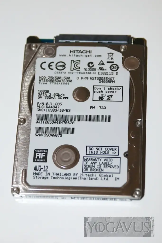 - Festplatte 2,5″ mit 500 Gigabyte von HGST, Modell HTS545050A7E380