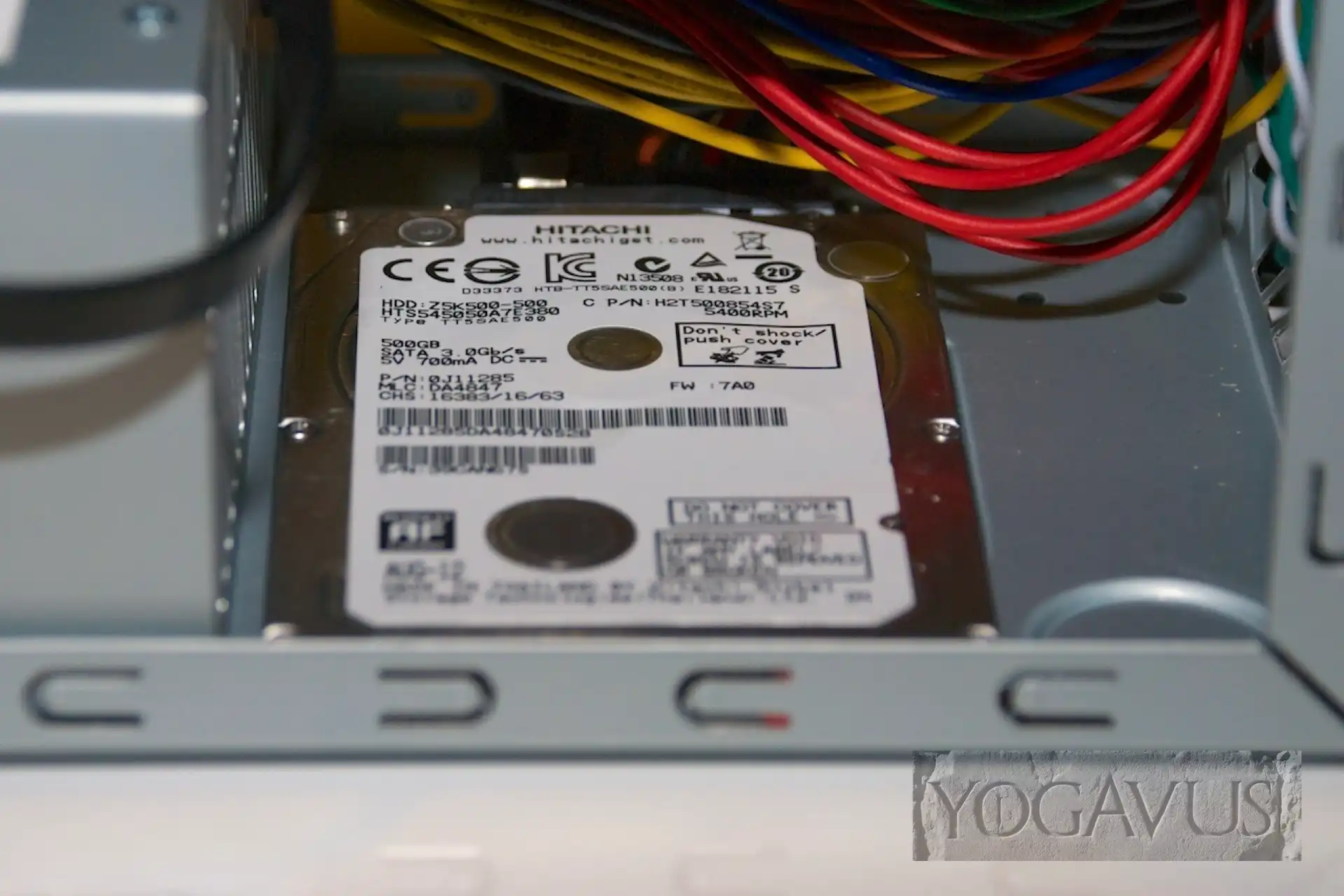 - Festplatte 2,5″ mit 500 Gigabyte von HGST, Modell HTS545050A7E380