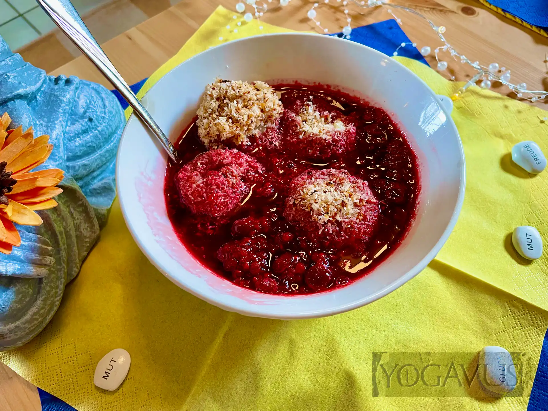 “Koche” auch du geschwind dieses Süppchen mithilfe dieses Rezepts nach und gestatte auch du deinen Geschmacksknospen die Bergwanderung durch Täler fruchtsäuerlicher Wonne und über Gipfel kokoraspliger Knödel. Fürwahr, in derlei Momenten schmeckt sich das Leben.