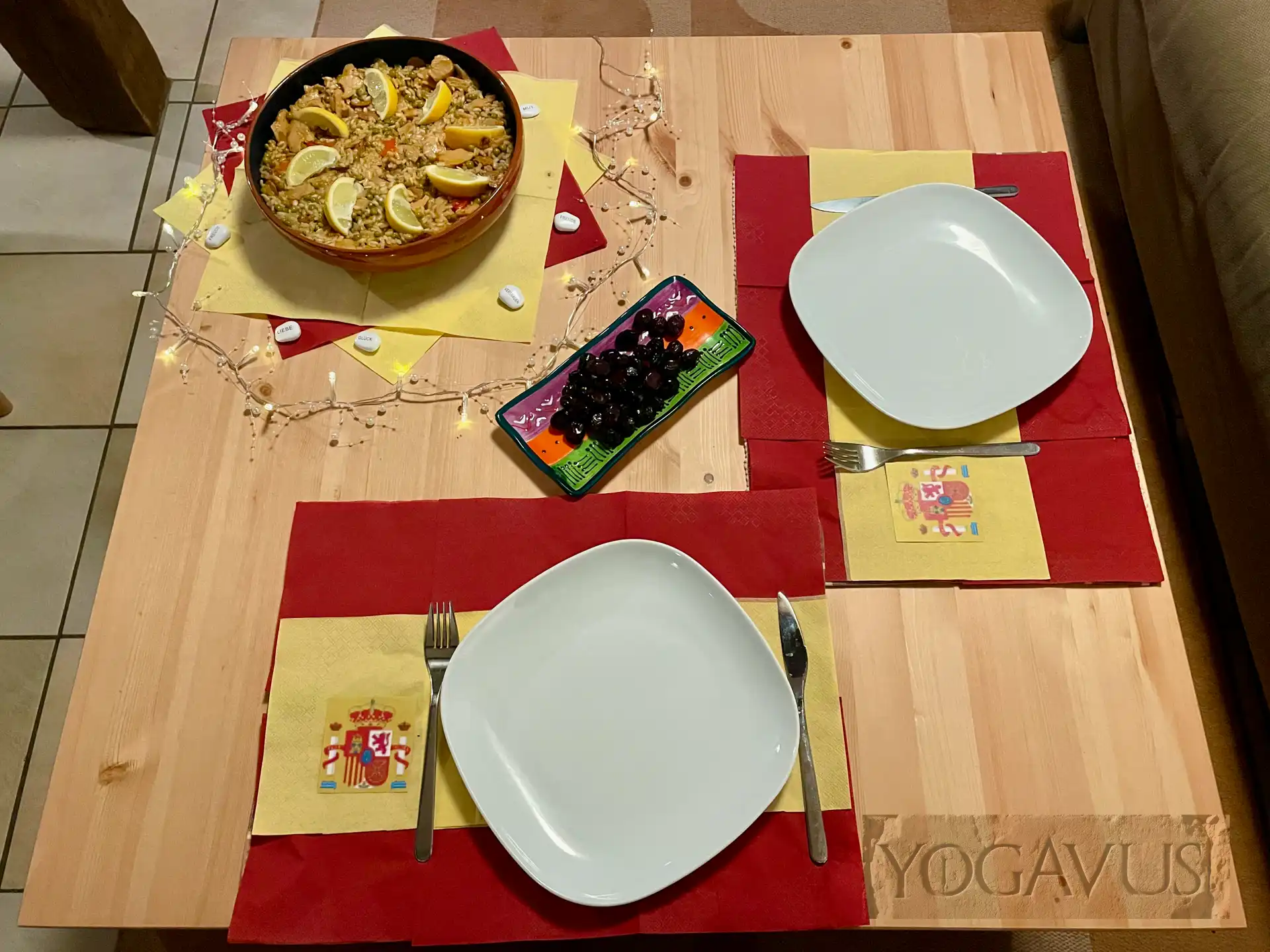 Im besten Falle fällst du mit einer unveganen mallorquinischen Paella und der ihr zum Opfer gefallenen tierischen Seelen nur der Trägheit anheim. Der Yogi weiß, dass derlei Tamas, der Zustand von Trägheit und Düsternis, ein Aspekt des Kleshas Avidya ist, der Unwissenheit. Im Yoga gestalten wir bewusst unser Leben. Den Kleshas, den Ursachen unserer Leiden, wirken wir durch yogische Bewusstheit entgegen. Und so komplex die Yogawissenschaft nach ihren vielen Jahrtausenden geraten sein mag, alle Wahrheiten sind in sich einfach und inhärent in jedem noch so kleinstem Aspekt yogischen Wissens.