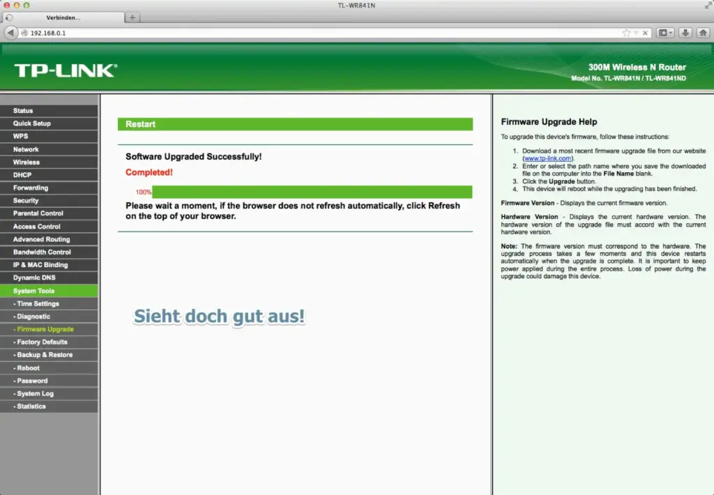 Leute, wie immer macht Ihr alles auf eigene Gefahr, so auch den Tausch der Firmware auf dem TP-LINK Router. Doch ein ‘Brikettieren’ der Hardware wird kaum passieren, wenn man langsam, konzentriert, bedacht und (vor allem) mit reinem Herzen zugange ist!