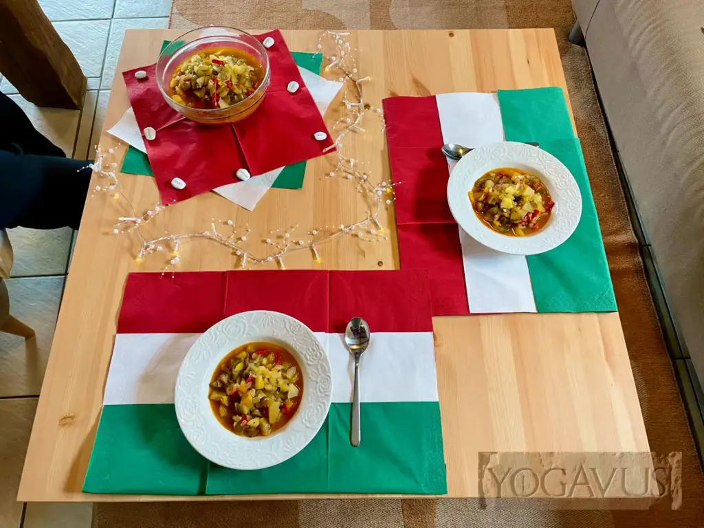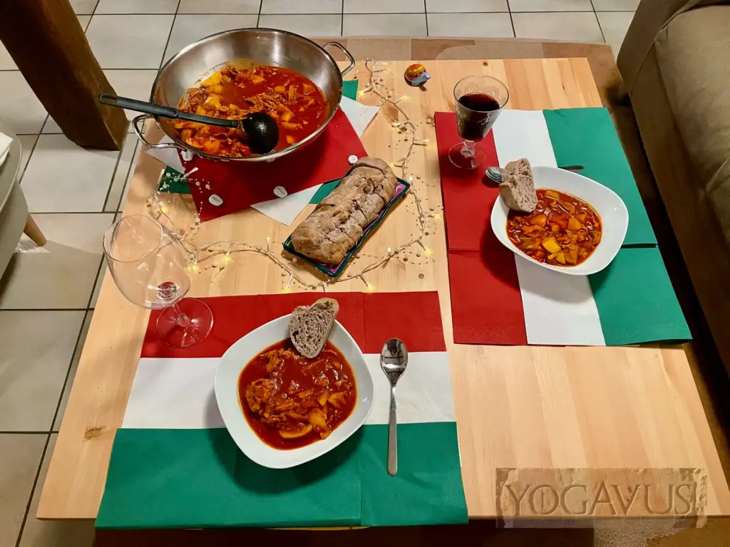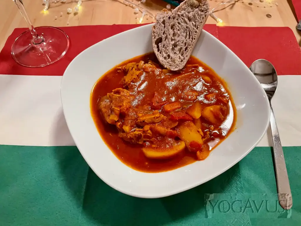Gulasch essen, aber ohne den Kühen Böses zu wollen? Geht ganz leicht. Dank meiner Muse Melania Yogavia und ihrem feinem Rezept zum “Ungarisches Gulasch vegan à la …“ tanzt deine Zunge auf ungarischen Aromen, deine Lachfältchen zwinkern in freudiger Ohnmacht dem Höhepunkt unseres Reisetages zu. Ehrlich!
