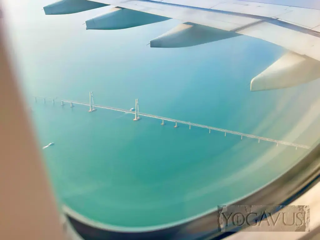 Im Landeanflug kam ich mit Blick auf die Hongkong-Zhuhai-Macau-Brücke aus dem Staunen nicht raus. Eines der gewaltigsten Bauwerke unseres Planeten. Hochbeinig ragt das Ding aus dem Meer, Schiffe fahren drunterher. Der Hauptteil verbindet mit seinen knapp 23 Kilometern Hong Kong mit Macau.