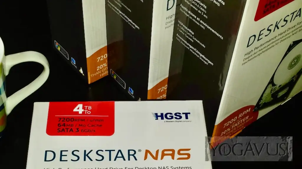 Festplatten: Für das System (Proxmox) und die VMs die angesprochene Western Digital WD2500HHTZ Velociraptor 250GB oder entsprechend die 500GB Variante der VelociRaptor. Jeweils ca. 80 bzw. 110 EUR. Die Rolle der dicken Datendampfer können 4TB HGST-Platten (mit 24/7 Freigabe für den Dauerbetrieb) übernehmen. Weil sie zur Zeit nicht ganz billig sind, kann man die nach und nach in der WG nachkaufen und zustecken: HGST H3IKNAS40003272SE 4 TB für gegenwärtig ca. 170 EUR. Läuft mit 7.200 U/min, 64 MB Cache und hat eine MTBF von 1 Million Betriebsstunden.