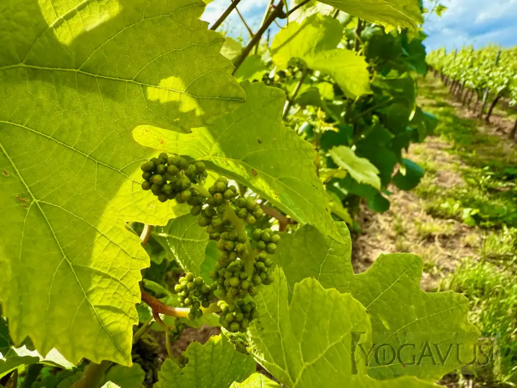 Der Wein noch ganz jung zum Zeitpunkt unseres AufenthaltsOben am am Ende der bebauten Zeile und auf dem Weinberg sahen wir auf das kleine Winzerhotel. Der offene Parkplatz ist vom Wein umgeben und die Traube ist der Regent im Hotel wie in der Region. Wein wohin das Auge blickt. Für einen ausgemachten Weinfreund eine prima Sache. Schließlich können Winde und Stürme und Schneefronten kommen, im Winzerhotel wird es sich auf jeden Fall aushalten lassen?! 😄